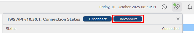 • Die Verbindung zwischen OptionsApp und TWS war unterbrochen.