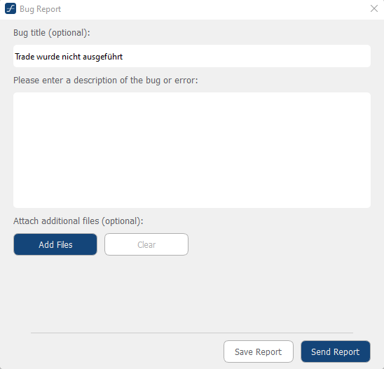 Falls sich das Problem auf einen konkreten Trade bezieht, sollten möglichst genaue Angaben zu diesem Trade gemacht werden.