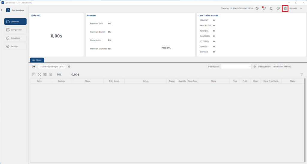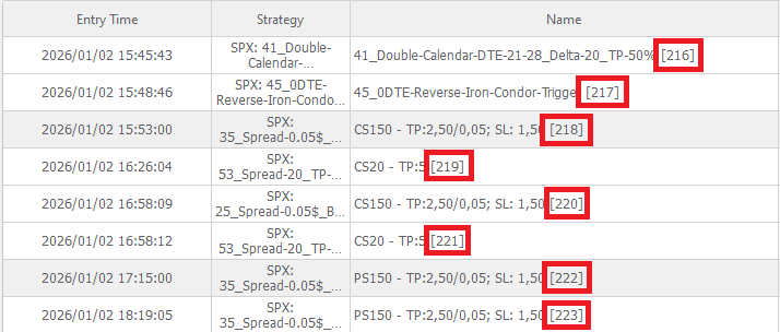 Diese wird in der OptionsApp im Dashboard sowie im Evaluations-Bereich direkt hinter dem Trade-Namen in eckigen Klammern angezeigt.
