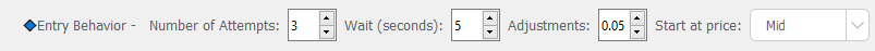 Das Entry Behaviour definiert, wie die OptionsApp versucht, eine Eröffnungsorder zur Ausführung zu bringen. Dafür können, für jedes Trade Template separat, folgende Angaben gemacht werden: