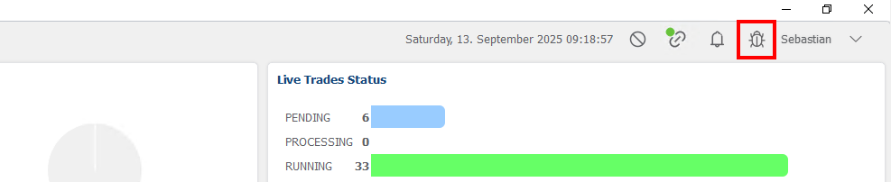 - Klicke oben rechts in der OptionsApp auf das Käfer-Symbol.