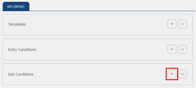 Die Bedingung muss zunächst im Tab „Configurations“ in den Exit-Conditions angelegt werden, bevor sie einem Trade zugeordnet werden kann.