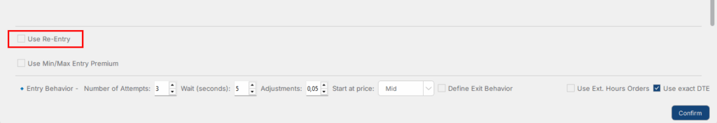 Standardmäßig ist Re-Entry deaktiviert und muss explizit im Trade Template aktiviert werden.