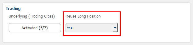 - Den Parameter Reuse Long Position auf Yes setzen.