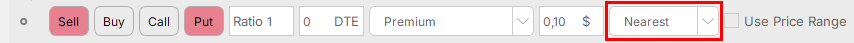 Über diese Einstellung wird festgelegt, wie die OptionsApp den gewünschten Zielwert (z. B. Premium, Delta oder Percentage) sucht.